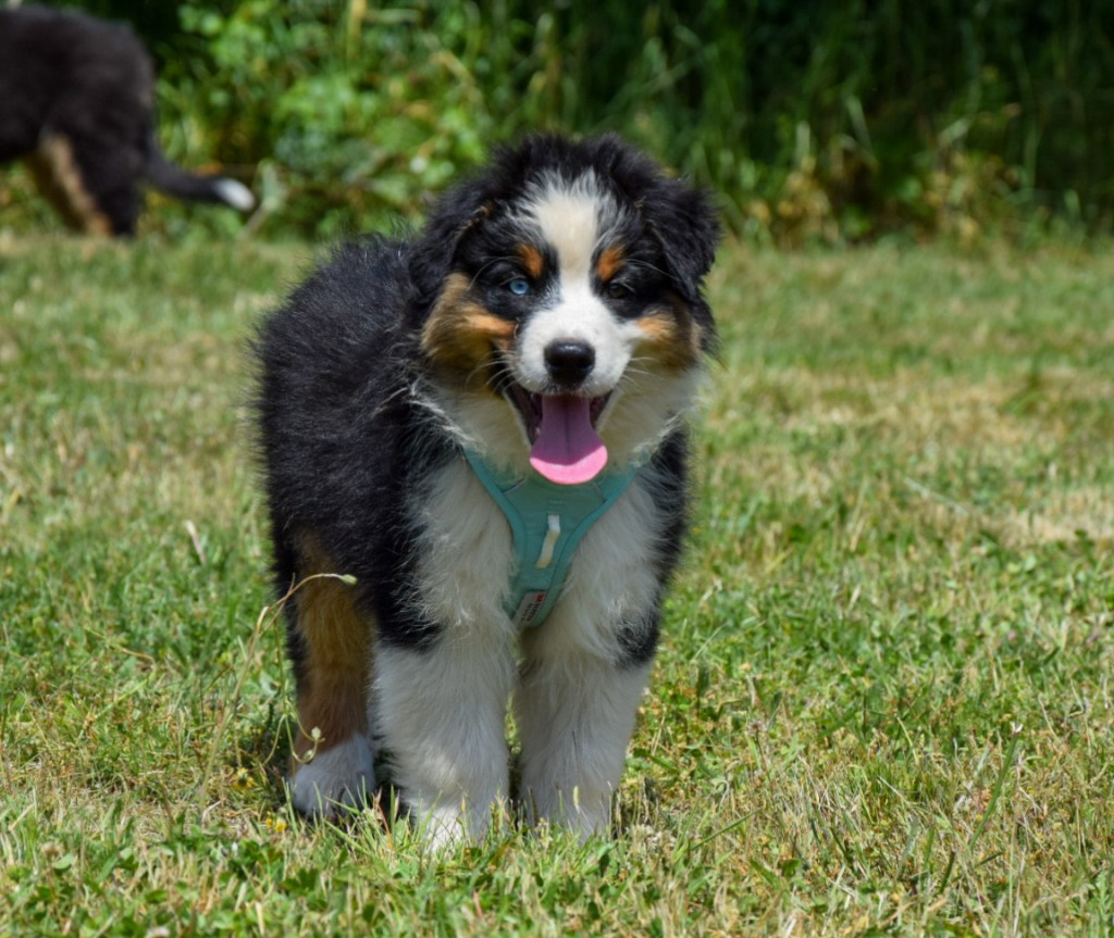 « Karlouch » Vous rechercher un pot de glue doubler clown ? c’est Kalouchon qui vous correspond ! Un chiot proche de l’homme qui ne demande qu’a bien faire, il se pose facilement mais vous suivra dans les activités que vous lui proposerez, il peut convenir a une famille qui souhaite faire plus que de la balade; agility, mantrailling, cani-cross ou VTT. Il a un peu plus de réserve concernant les chiens inconnus au premier abords, mais une fois les présentations faite tout ce passe à merveille !
