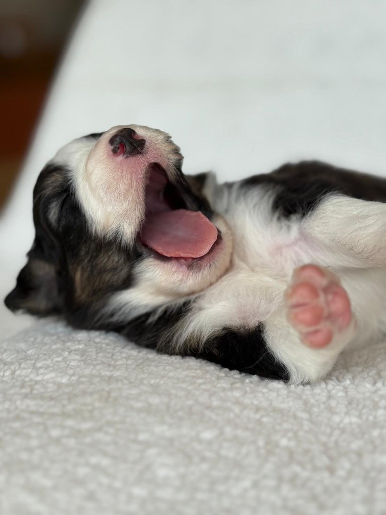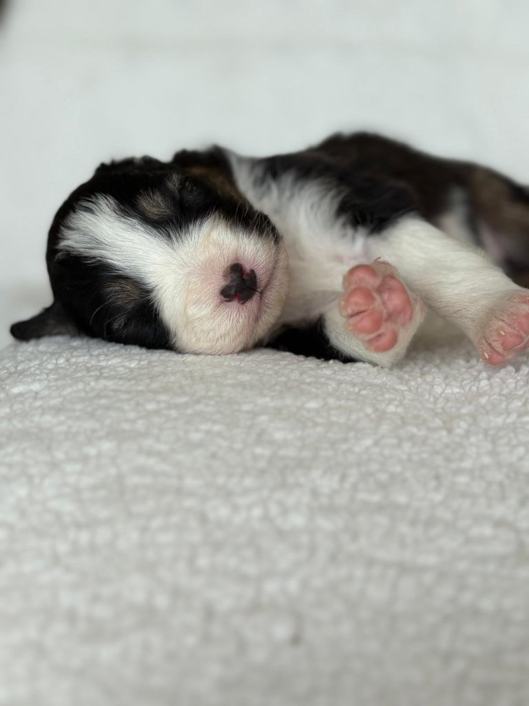 Les premiers bébés sous notre affixe sous nés ! Issus de notre précieuse Teïpo et du beau Oscar, ils ont au nombre de sept, six garçons pour une seule puce !