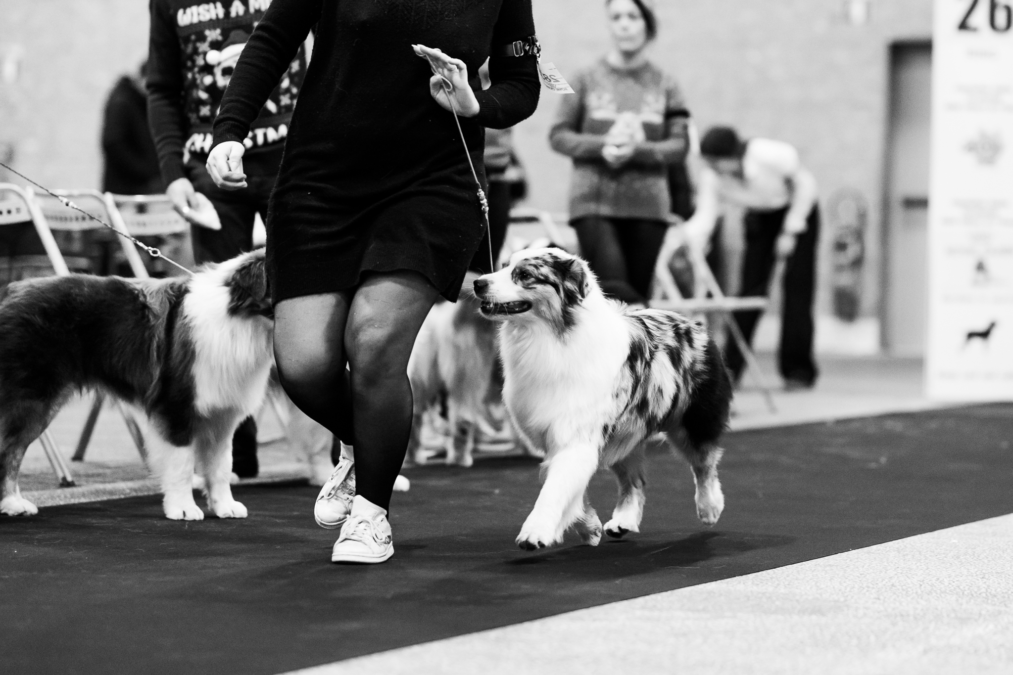 Durant ses expositions on demande un « statique » au chien, le juge examine la classe dans son entièreté puis notre chien en individuel, dents, tête, corps, testicules pour les mâles, puis les allures en aller / retour et ensuite de profil.